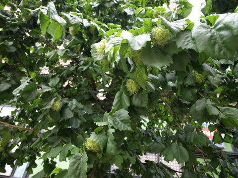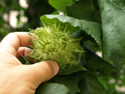 Naletimo na drevo s kosmatimi sadeži, verjetno nekakšnimi lešniki
