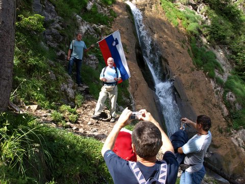 Obvezno slikanje pod slapom s slovensko zastavo - je pač državni praznik