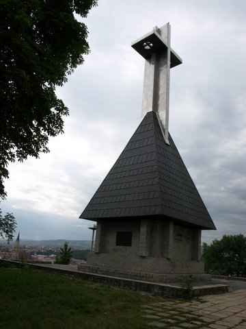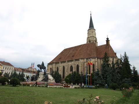 Pred veliko katoliško katedralo stoji spomenik Matije Korvina