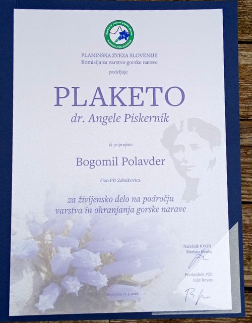najvišja priznanja za dela na področju varstva narave - plakete dr. Angele