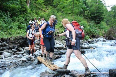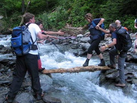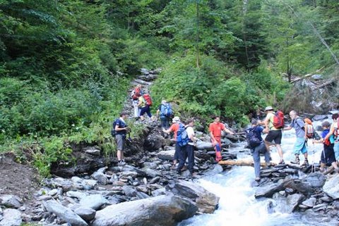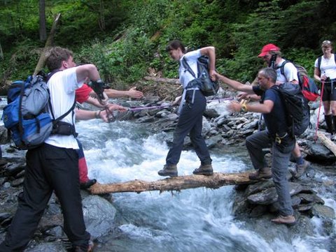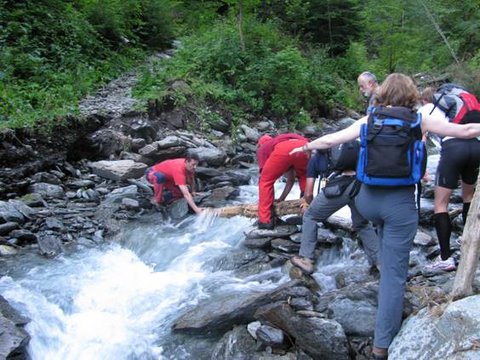Romunska vodnika in gorska reševalca rada pomagata, da popeljeta dekleta čez reko!