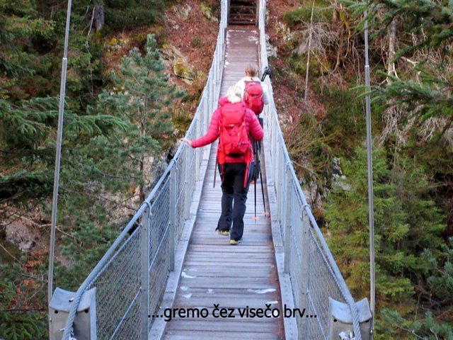 €/h). Z izhodišča se odpravimo čez visečo brv in se pričnemo vzpenjati proti