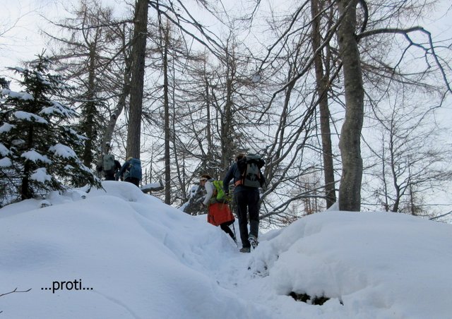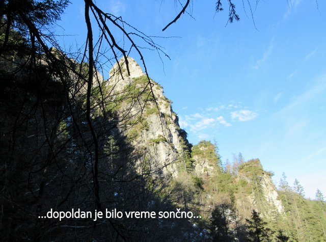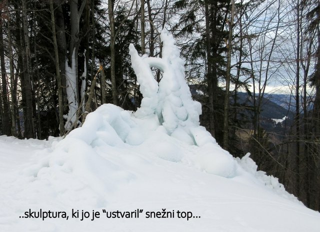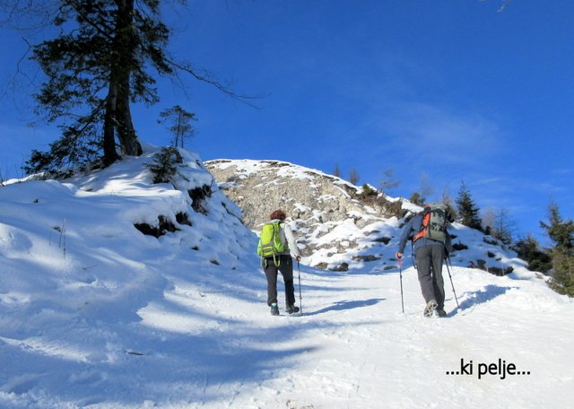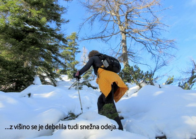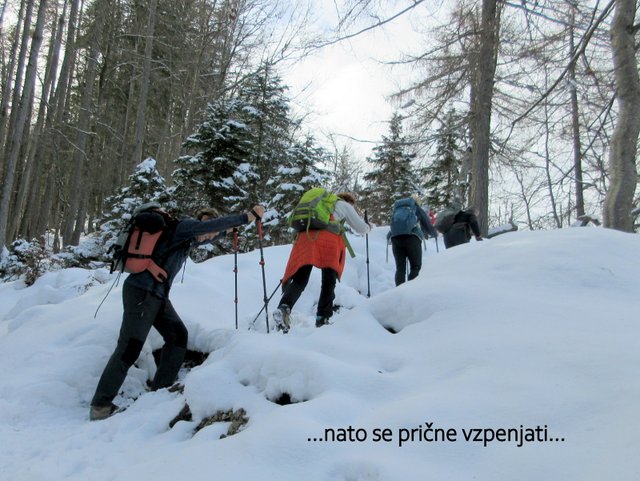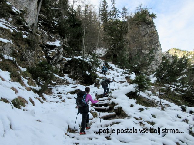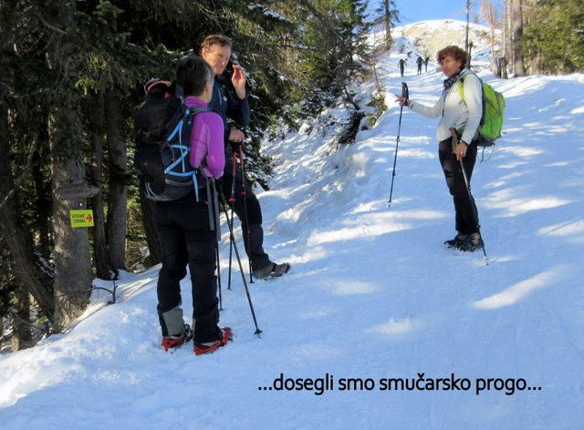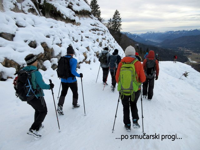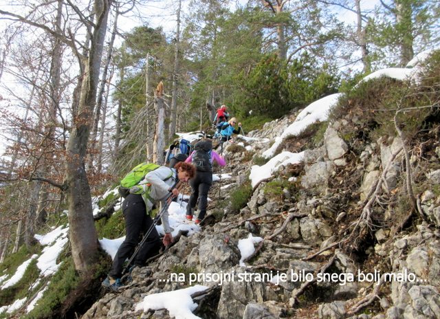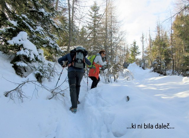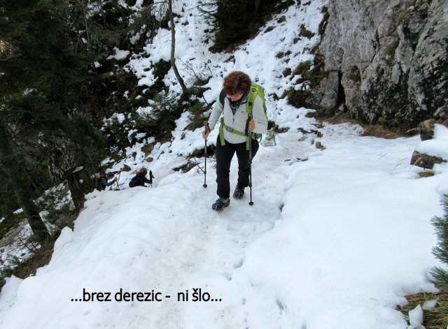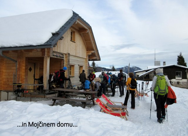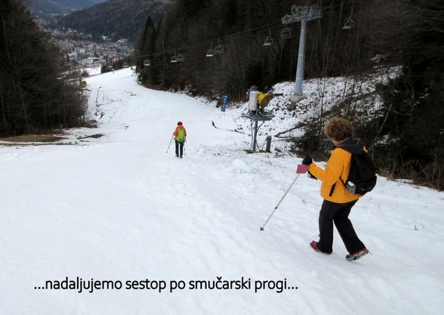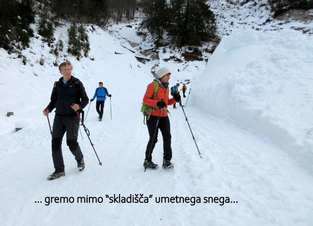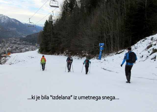 pričel sneg, ki je bil v senčnih predelih pomrznjen. Od Mojčinega doma