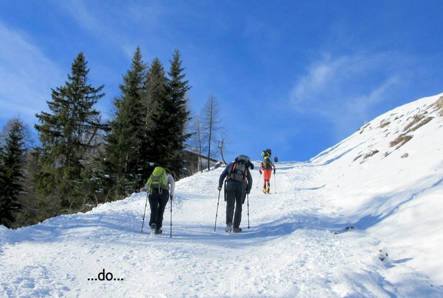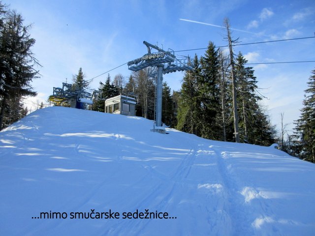zasneženi smučarski progi in se mimo Bedančevega doma vrnemo do našega