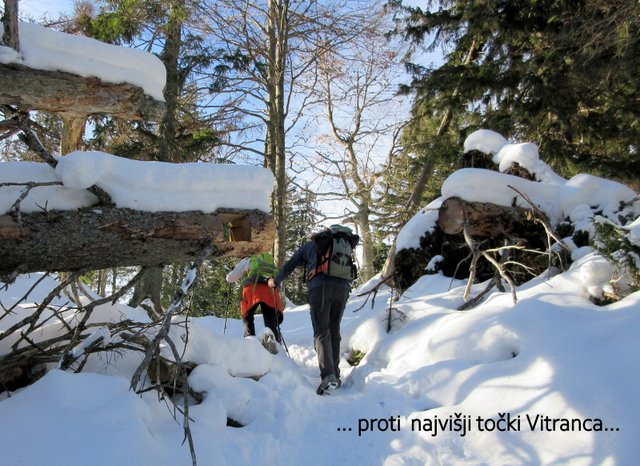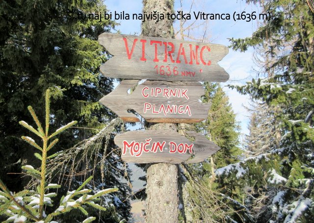 nadaljujemo po grebenu, najprej na najvišjo točko Vitranca (1636 m), nato pa