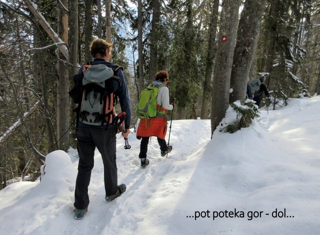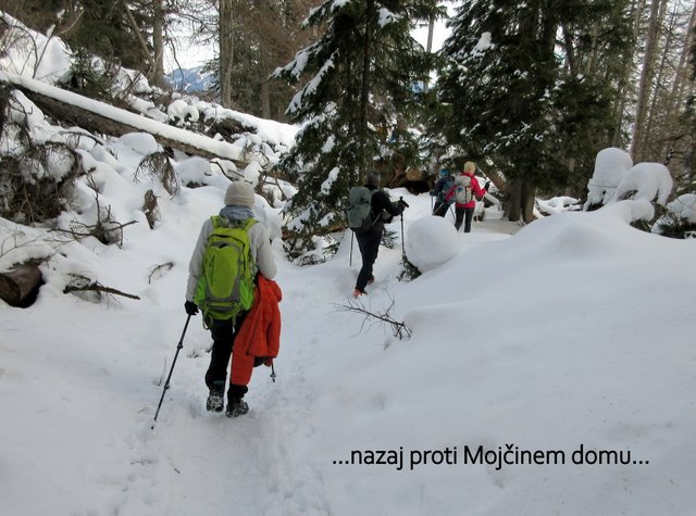 postanku na vrhu sestopimo nazaj do Mojčinega doma, od koder se spustimo po
