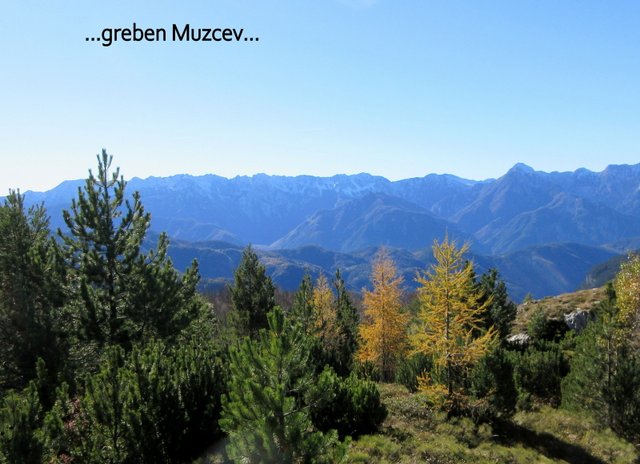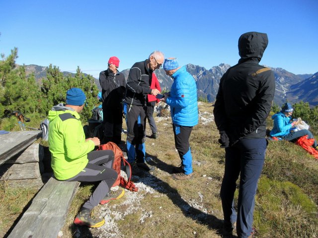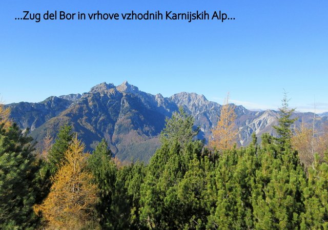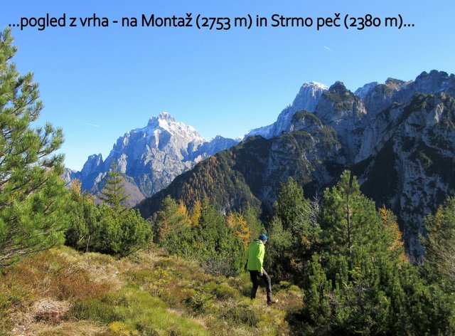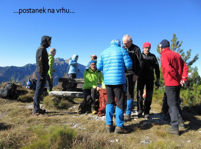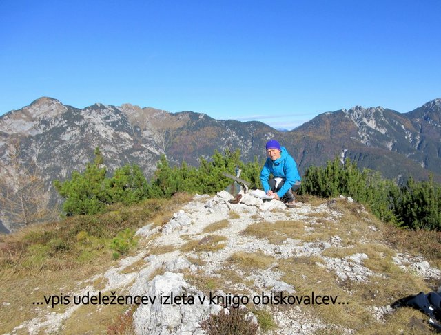 Julijskih in Karnijskih Alp. Po postanku na vrhu sestopimo po poti vzpona in si