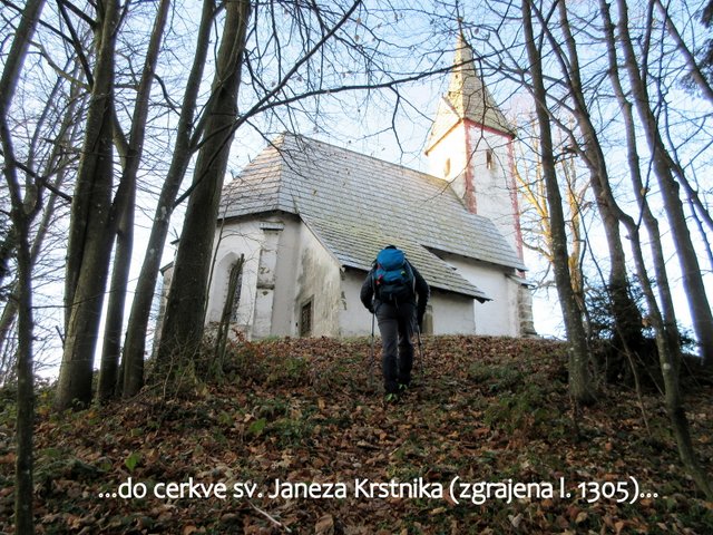 Krstnika (14. stol.), ki stoji na manjšem hribčku (655 m); tu se začne tudi