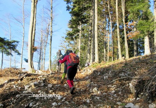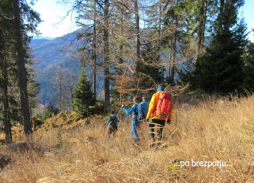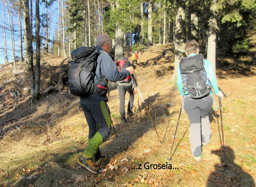 pa nadaljujemo po grebenu (po neoznačenih poteh in brezpotju) na Grosel