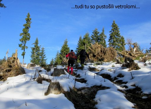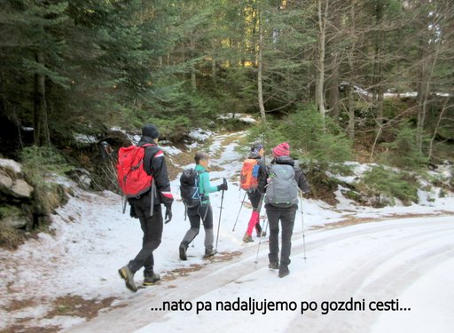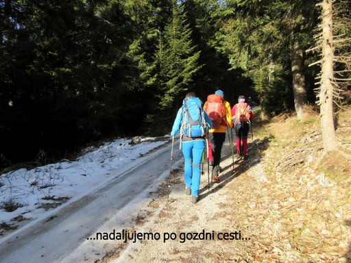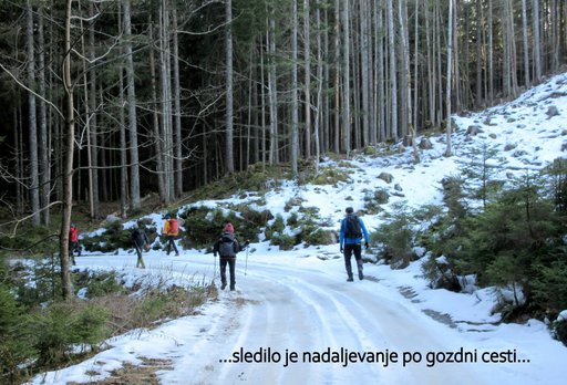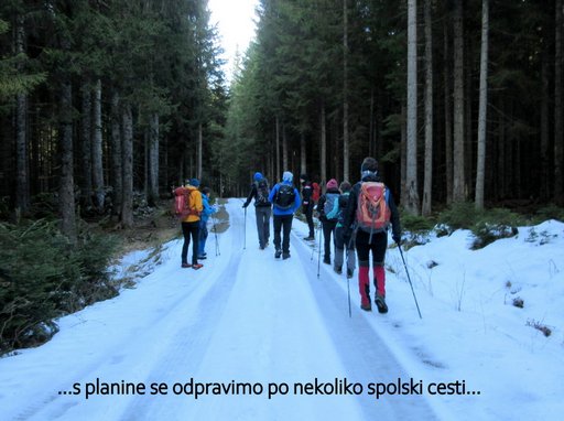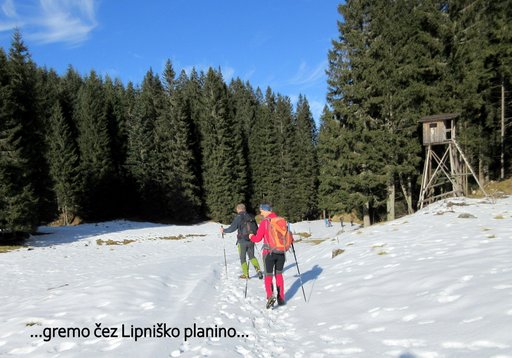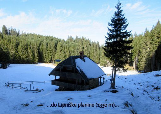 (1411 m). Po postanku na vrhu nadaljujemo po gozdni cesti na Lipniško (1330
