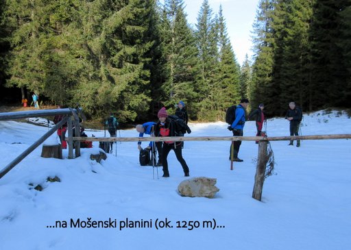 m), nato pa še na Mošensko planino (ok. 1250 m), od koder se po brezpotju