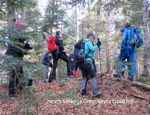 povzpnemo še na Veliki Gregorjevec (1268 m). Po markirani poti se potem