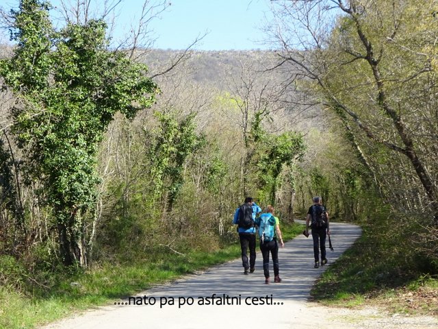 skalni steni (tokrat je bil že brez vode). Nadaljujemo do opuščenega zaselka, nato pa