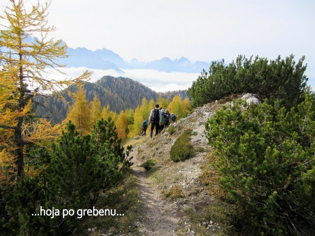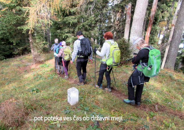 počitku na vrhu nadaljujemo po razgibanem  grebenu, kjer poteka državna meja;