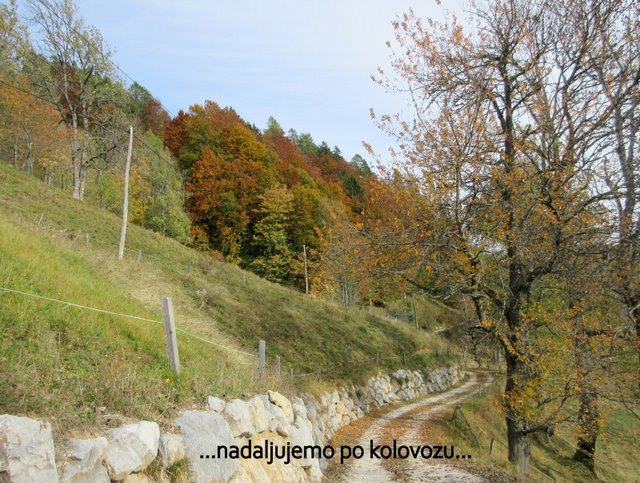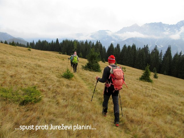 Jureževo  planino do kmetije Merkl (1030 m - Jureževa kmetija je opuščena), nato  pa