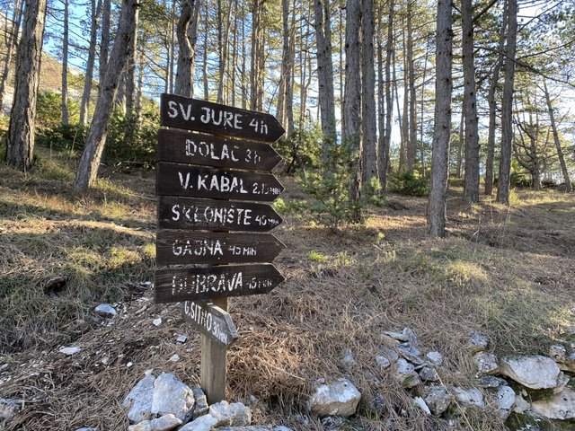 Nekaj kamnitih skokov in smo prispeli do križa na Velikem Kabalu. Zakaj to