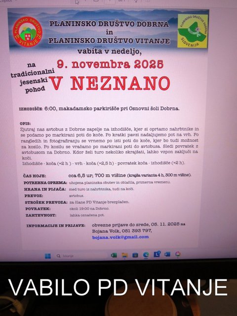 IZLET V NEZNANO nov 9. Vsako jesen se planinci najboljšega PD Vitanje v