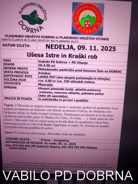 izlet v neznano, PD Dobrna pa svoje člane na Kraški rob in Ušesa Istre in to