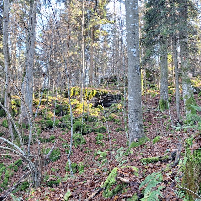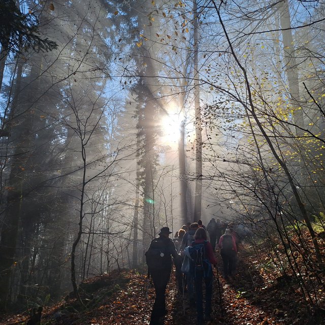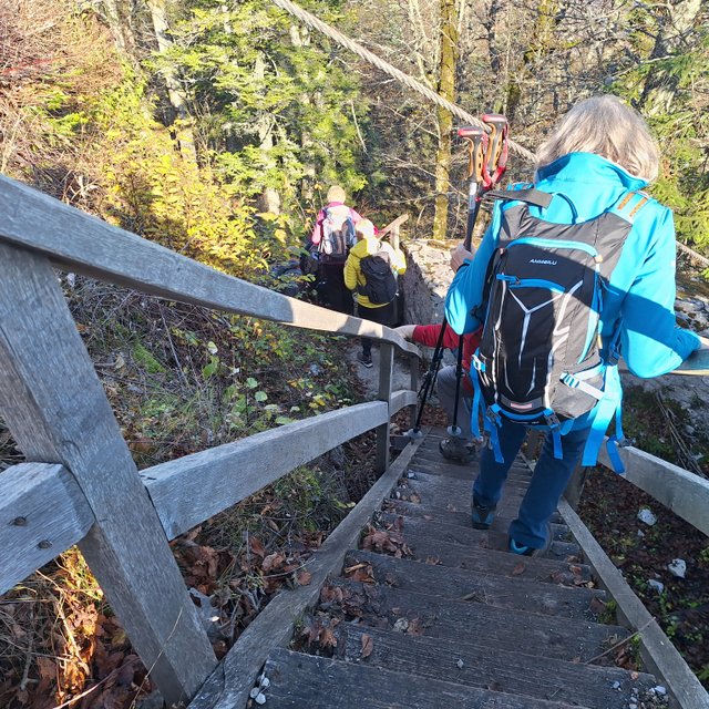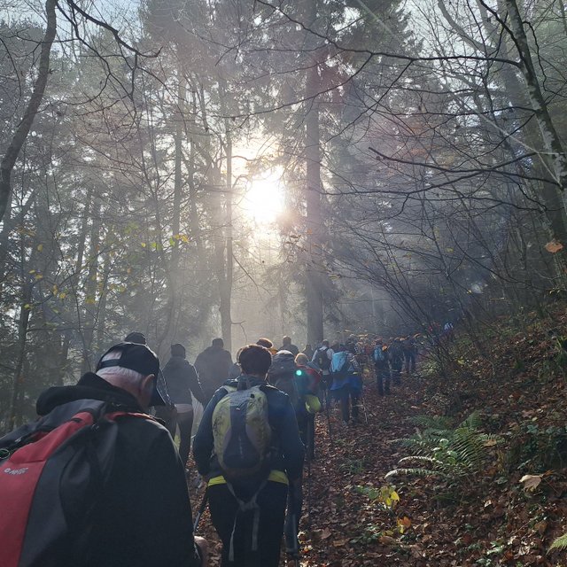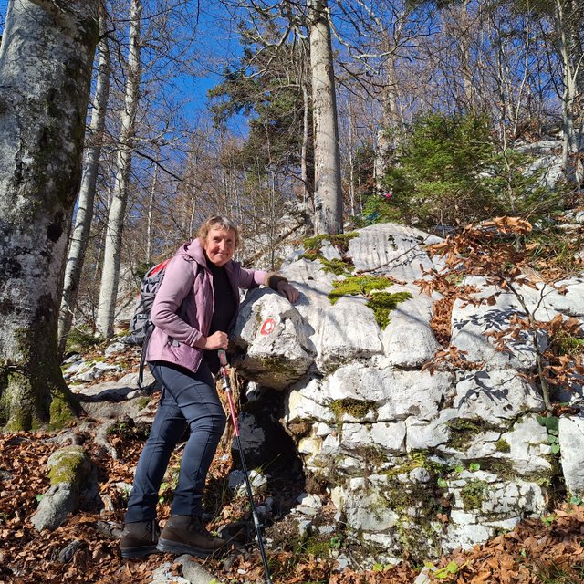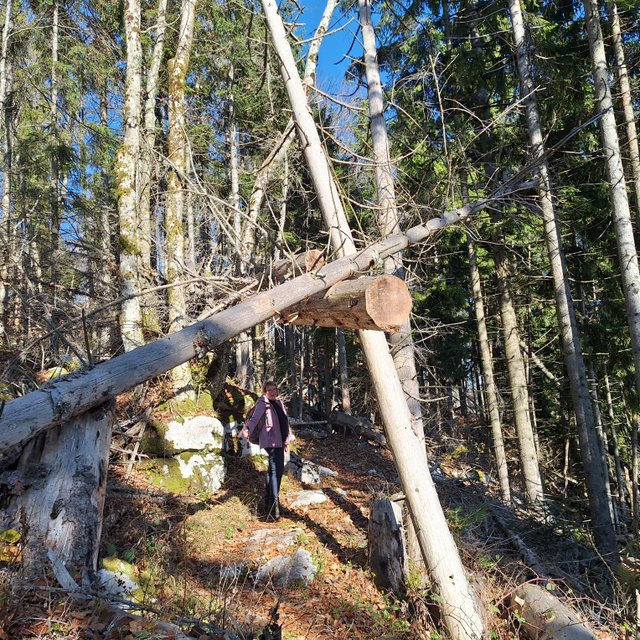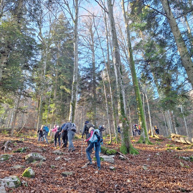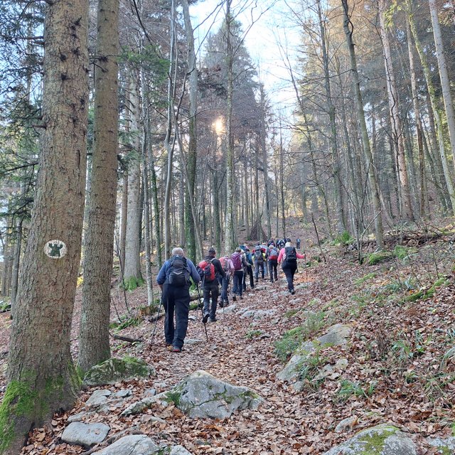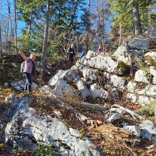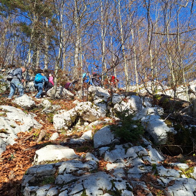 nadaljevali pot, ki je bila mestoma zaradi mokrega listja, skal in korenin,