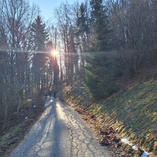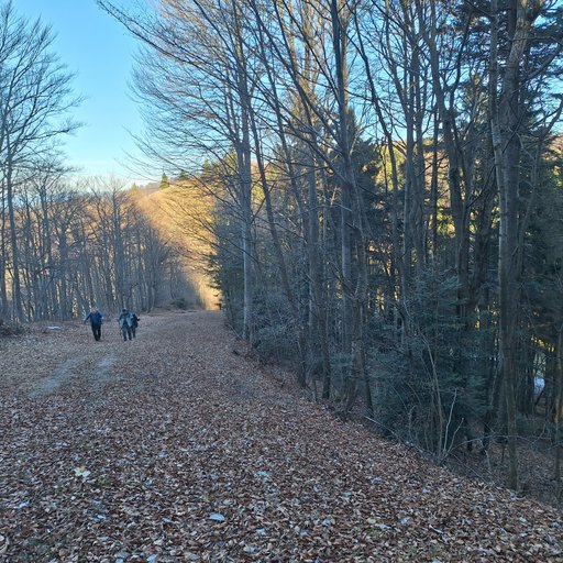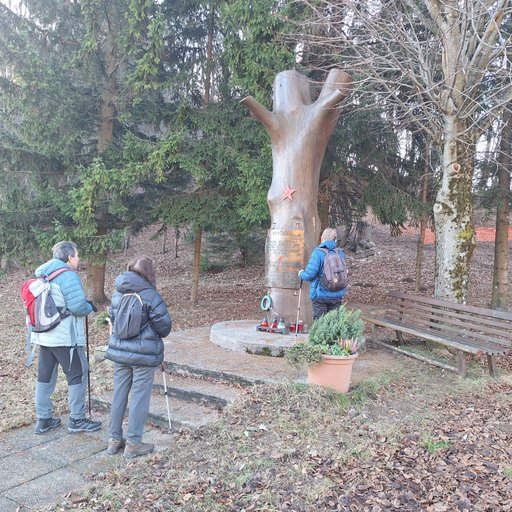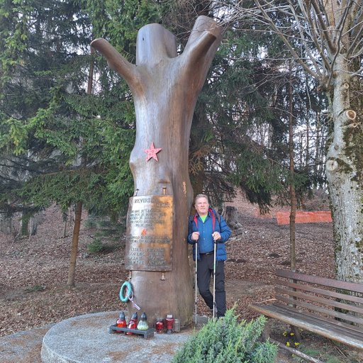 krenili proti spomeniku. Pot nas je vodila naprej proti smučišču in vzpon je