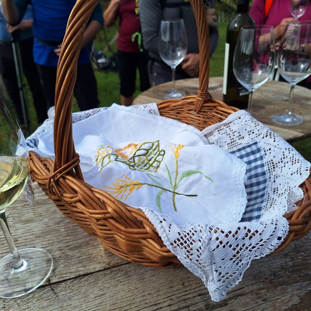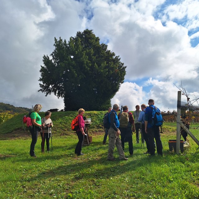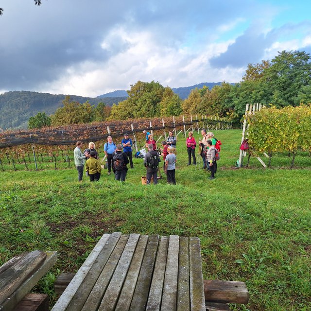 za njih. Na sredi poti pri stari trapistovski tisi nas je pogostil vinar, ki