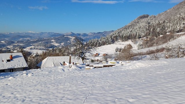 Prva prava zimska v letošnji zimi v sončnem vremenu iz Črešnjic.