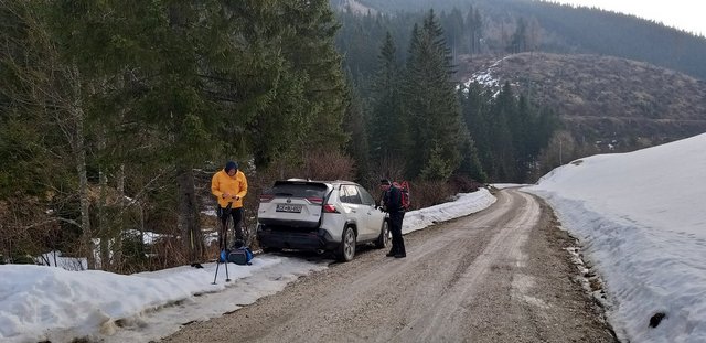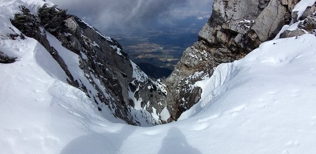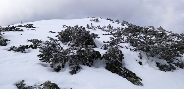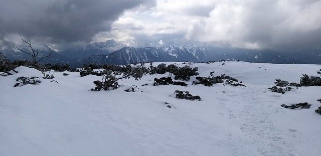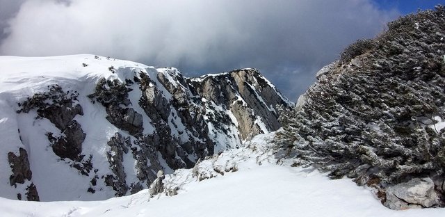 izhodišču. Krplje pri sestopu so še kako prišle prav,saj se je snežna
