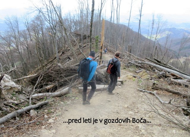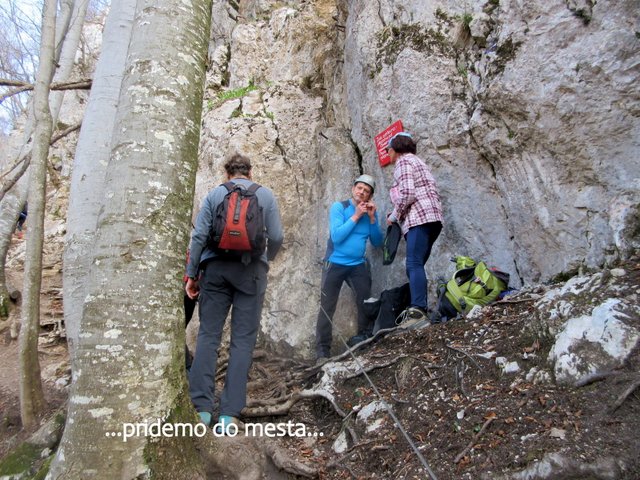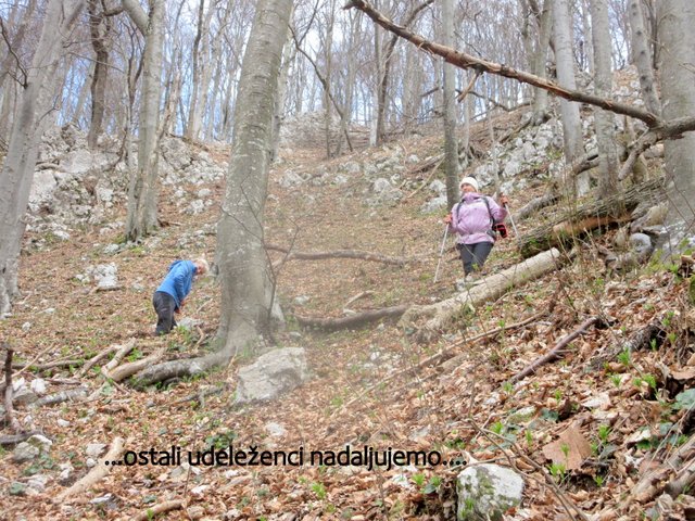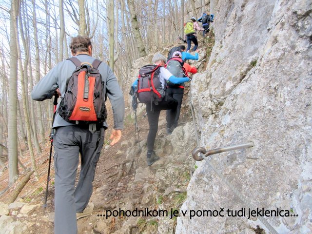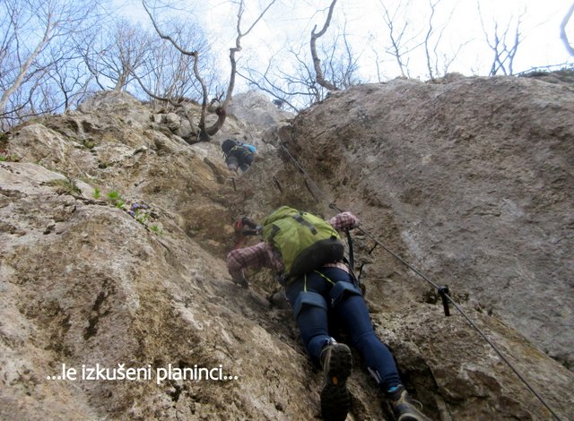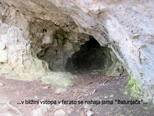 preplezata; ostali pa nadaljujemo mimo jame Baljunače do zavarovanega vojaškega