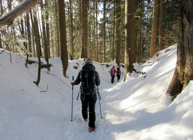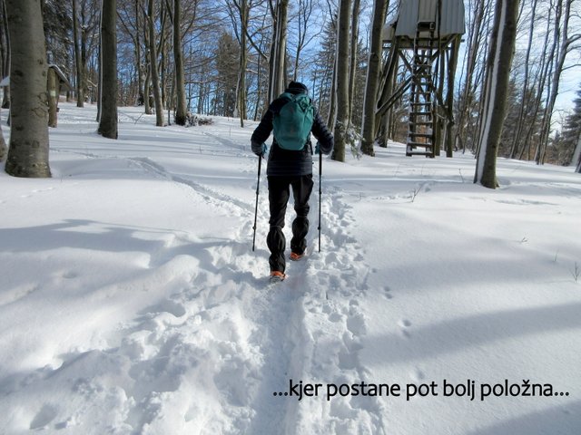 odpravimo po zasneženih pobočjih do Črnega vrha (1204 m), ki je najvišja