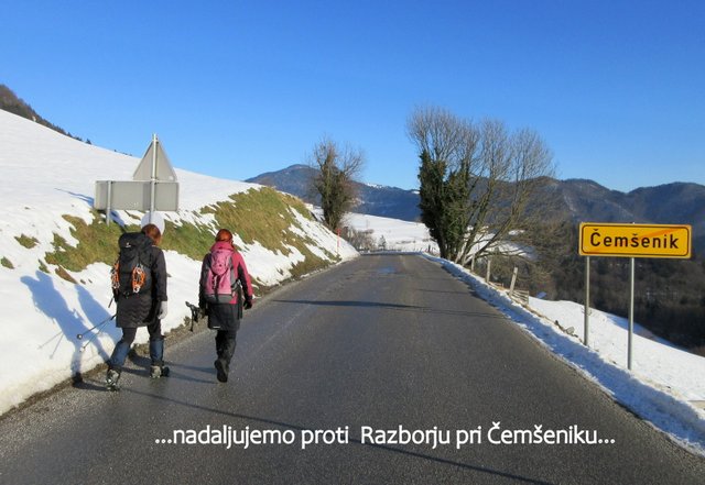 sestopimo do naselja Čemšenik (641 m), ki leži na prisojnih terasah pod