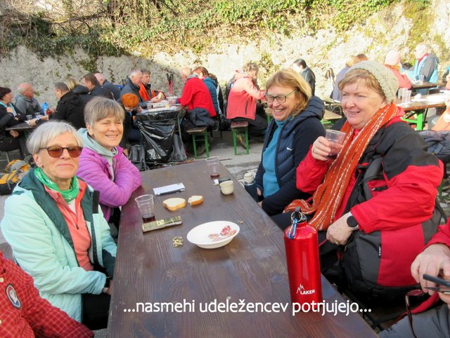 (čaj, krof), potem pa je pohod potekal mimo slapu Savinka do vrha Čičerja (726 m). Po