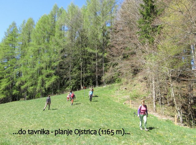 Paškega Kozjaka do velikega travnika - planje Ojstrica (1165 m), od koder se povzpnemo