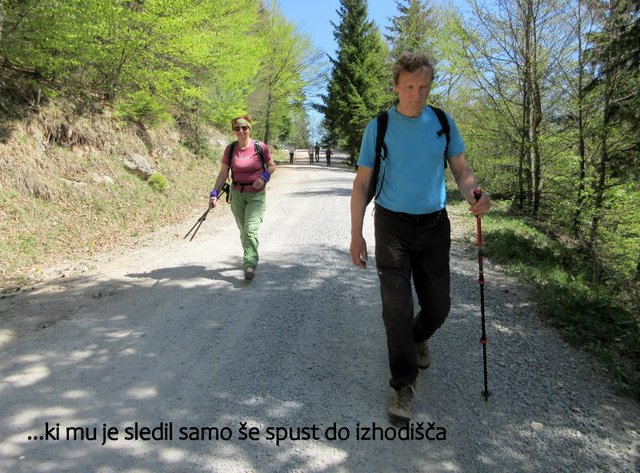 vrnemo na naše izhodišče. Hoje je bilo za 5 ur (ok. 12 km); vzponov po poti se je