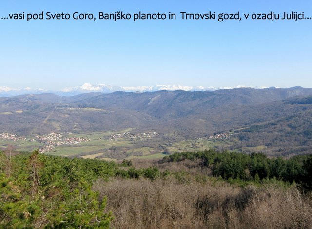 na obe Gorici, Sabotin, Banjško planoto, Julijce, itd. Nadaljujemo do zaselka Sveta