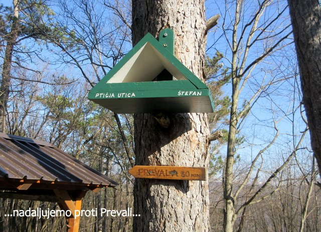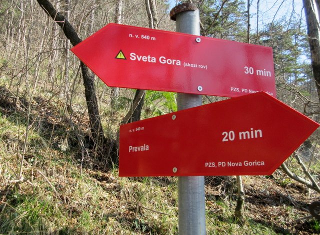 Škabrijela sestopimo na sedlo Prevala (336 m), kjer se nahaja spominsko obeležje
