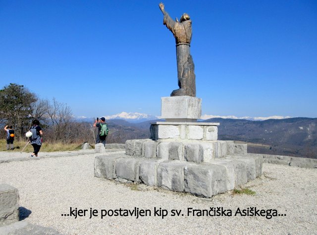 m), kjer je postavljen velik kip sv. Frančišku Asiškemu; s hriba so prekrasni razgledi