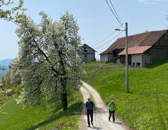 Naš krožni pohod nas je vodil preko Desinič na Malo, Veliko goro in Vina goro. Pomlad