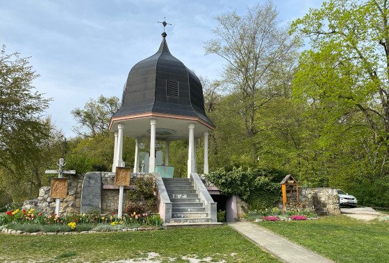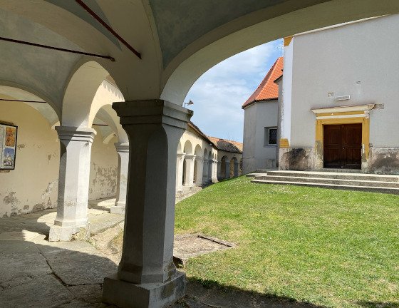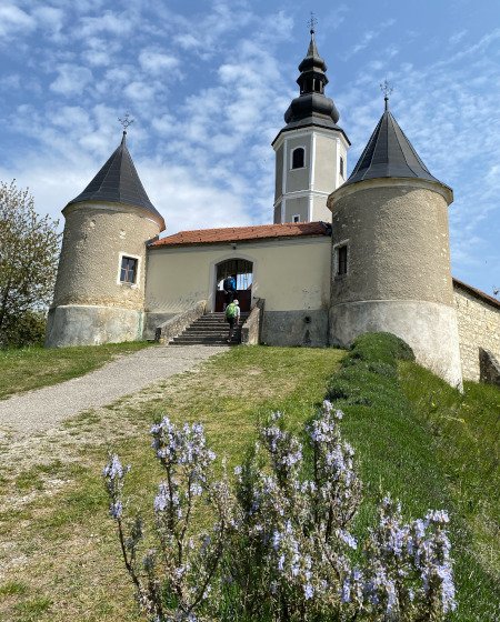 pa smo videli baročni obok in zvonik. Lega cerkve je na hribu in nudi širok razgled.