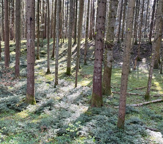 bilo naše pravo izhodišče, kjer smo začeli pot v lep sončen gozd. Pot je vila po