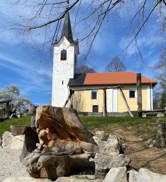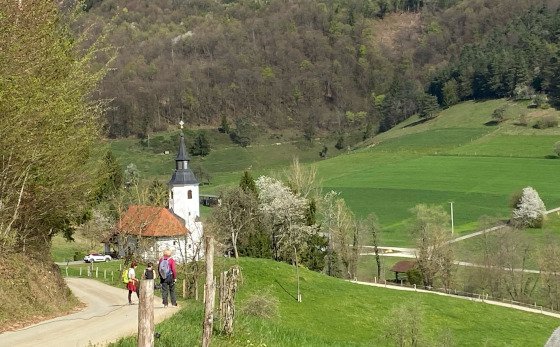 makadamski cesti mimo številnih vasi. V vasi Bukovica na travniku pri cerkvi Janeza