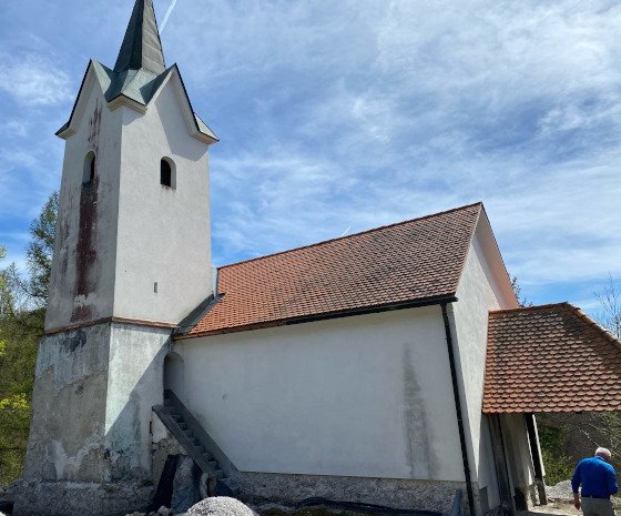 in oznako ključarja Matja Lundra iz 1907. Trenutno so obnavljali temelje cerkve. Pot je