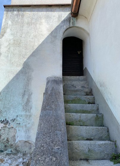 rimskim epitafom. Tu so bila tudi zanimiva lesena vrata z izrezljano priprošnjo Gospodu