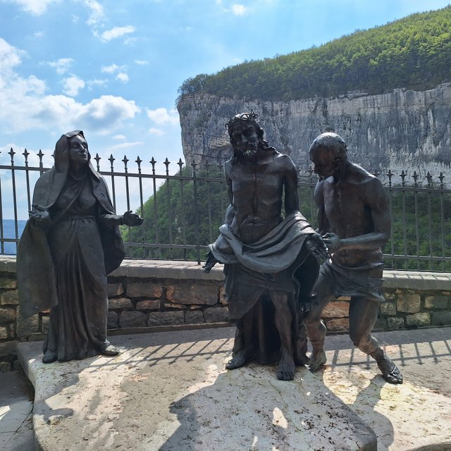 spustili po cesti mimo zanimivega križevega pota. Nekoč je bila težje dostopna, saj je