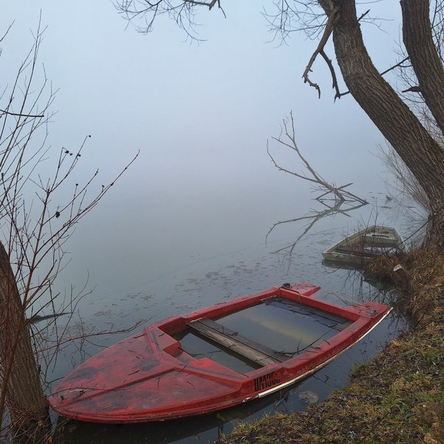 Trojiškega jezera v megli. No, sonce je kmalu pregnalo trdovratno meglo in in večina