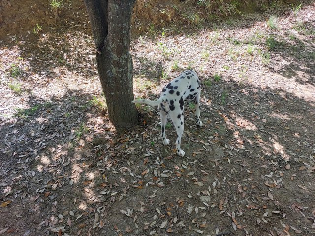 vonjem, rastline oddajajo vonj. Pes začne kopati okoli drevesa in njegov vodnik ve, da