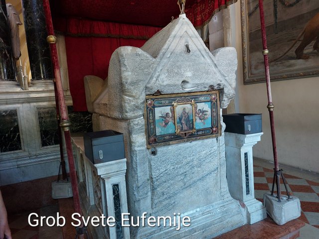 starega mesta je bazilika Svete Evfemije, znotraj lepo okrašena s kipi in s freskami.