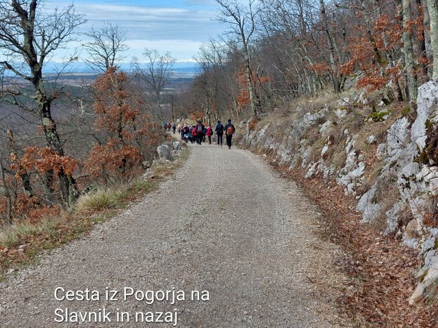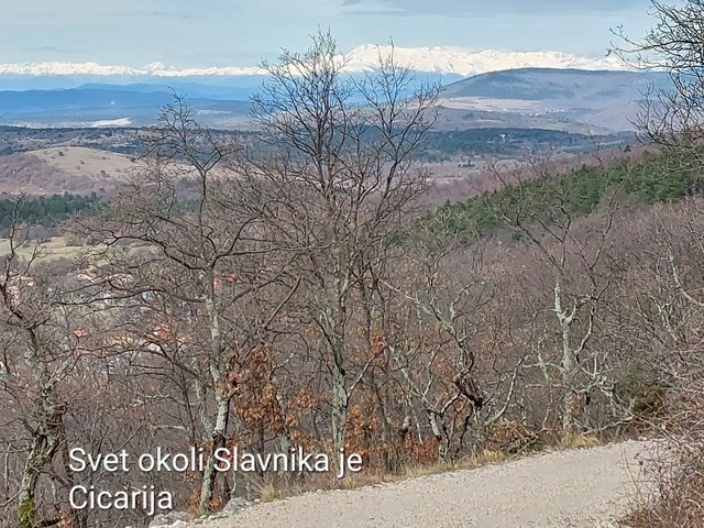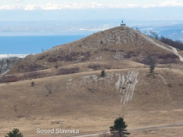 poti na morje. Slavnik je gora z bogatim razgledom. Z vrha smo videli Alpski svet,