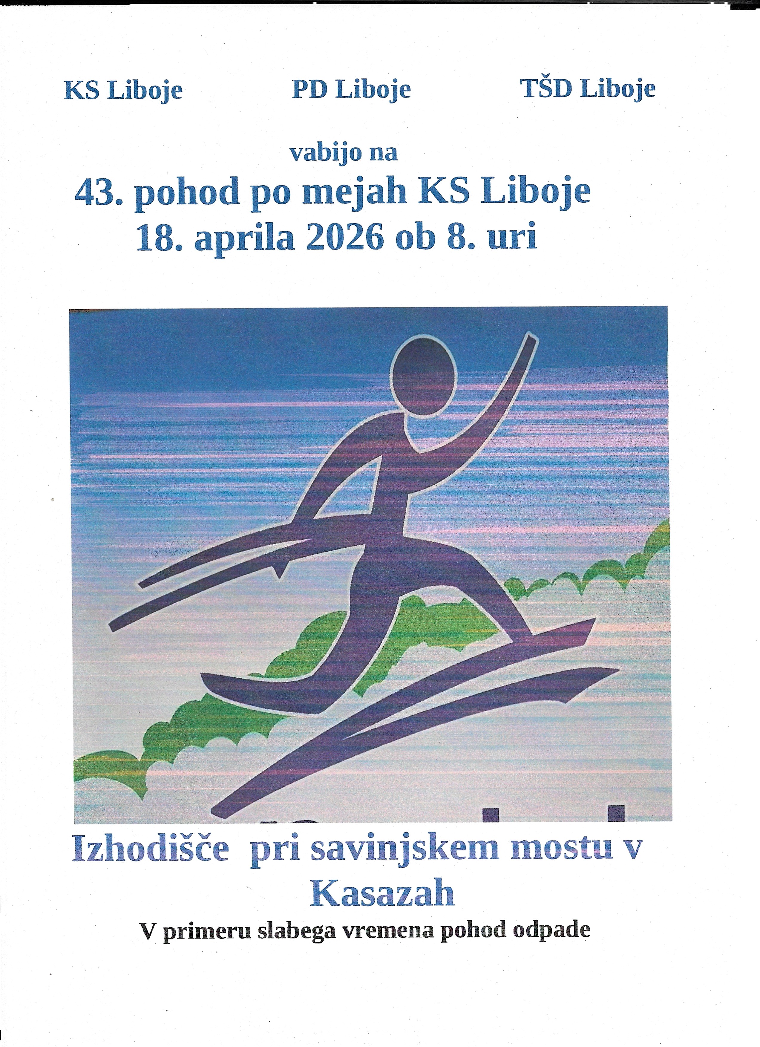 - 18.04.2026: PD Liboje: 43.pohod po mejah KS Liboje