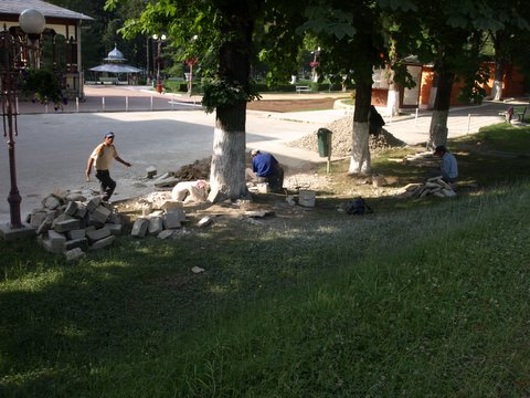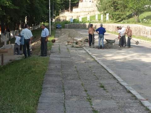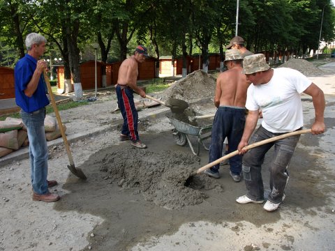 Beton se tukaj meša ročno (še pomnite, tovariši)
