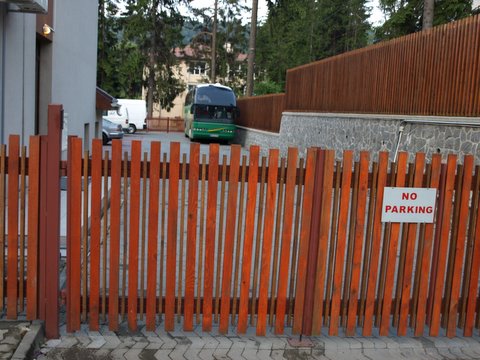 Varno spravljen avtobus za hotelsko ograjo